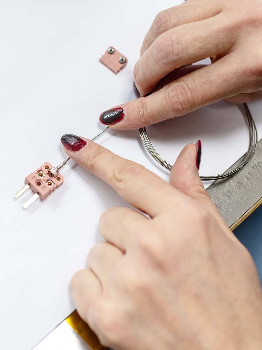 Mantelthermoelemente zu fertigen ist kein Job für eine Maschine. Jedes Einzelne entsteht in sorgfältiger Handarbeit von geschulten Mitarbeitern, die aufgrund jahrelanger Erfahrung bei jedem Handgriff ganz genau wissen, worauf es ankommt. 213 mal, wenn Sie nur ein einziges Thermoelement benötigen oder tausendfach in der Serienproduktion.